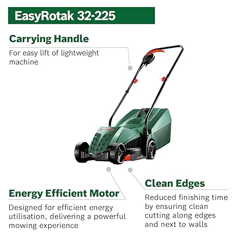 Thông tin sản phẩm BOSCH Corded Lawnmower EasyRotak 32-225 (1200 Watt, Cutting Width: 32 cm, 31-Litre Grass Box, Suitable for Quick and Easy Mowing with Tidy Edges)