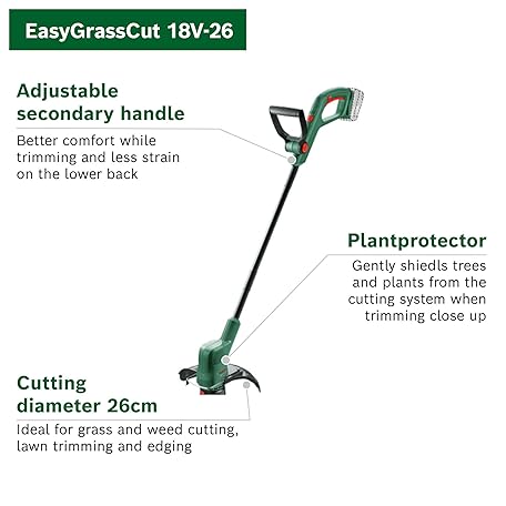 Thương hiệu BOSCH là cái tên nổi tiếng được rất nhiều khách hàng trên thế giới chọn lựa. Với kiểu dáng đẹp mắt, sang trọng, sản phẩm Bosch Cordless Grass Trimmer EasyGrassCut 18V-26 (Without Battery, 18 Volt System, Cutting Diameter: 26 cm, in Carton Packaging) là sự lựa chọn hoàn hảo nếu bạn đang tìm mua một món cho riêng mình.