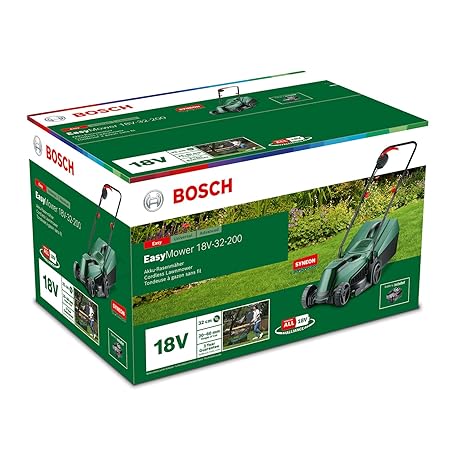 Thông tin sản phẩm Bosch Cordless Lawnmower EasyMower 18V-32-200 (1x 4.0 Ah Battery, 18 Volt System, Cutting Width: 32 cm, in Carton Packaging)