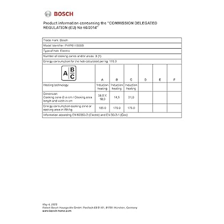 Thông tin sản phẩm Bosch Series 4 PWP611BB5B Induction Hob with TouchSelect, CombiZone, PowerBoost and Timer Switch Off, Integrated, Black, 60cm wide