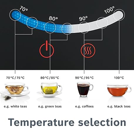 Thông tin sản phẩm Bosch Sky TWK7203GB 7 Variable Temperature settings & KeepWarm function, Cordless Kettle, 1.7 Litres, Black/Silver