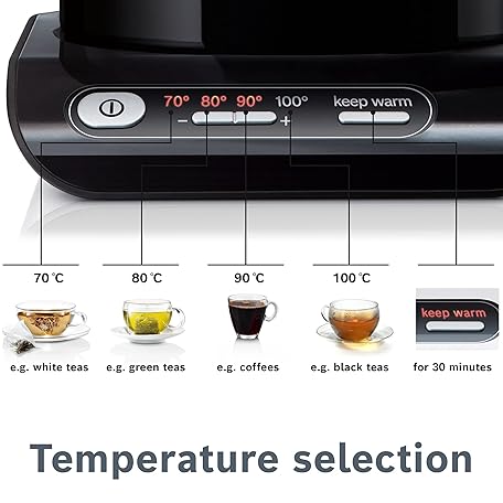 Thông tin sản phẩm Bosch Styline TWK8633GB Variable Temperature Cordless Kettle, 1.5 litres, 3000W - Black
