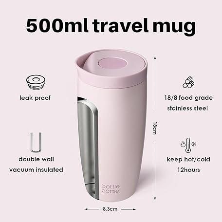 Sản phẩm BOTTLE BOTTLE Insulated Travel Mug 500ml Stainless Steel Office Coffee Cup with Push Button Lid Keeps Cold and Hot for 8 Hours (Baby Pink) đang được bán với giá ưu đãi là $27.7296 tại nước Anh.