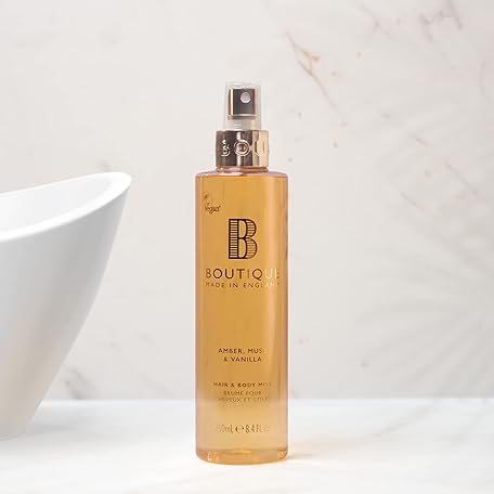Thông tin sản phẩm Boutique Body Spray 250ml - Amber, Musk & Vanilla Fragrance Womens Hair & Body Mist - Refreshing, Moisturising Spray With Essential Oils - Vegan - Made In England