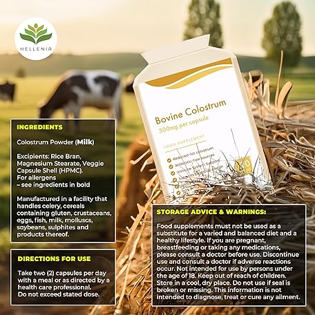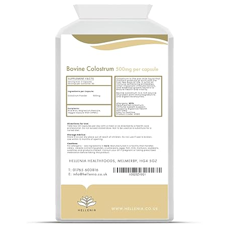Thương hiệu Hellenia là cái tên nổi tiếng được rất nhiều khách hàng trên thế giới chọn lựa. Với kiểu dáng đẹp mắt, sang trọng, sản phẩm Bovine Colostrum Capsules 500mg - 120 Capsules | Reduced-Fat Colostrum from Grass-fed Cows | 20% Immunoglobulins G | Free from Antibiotics | Digestive Health - Made in The UK by Hellenia là sự lựa chọn hoàn hảo nếu bạn đang tìm mua một món cho riêng mình.