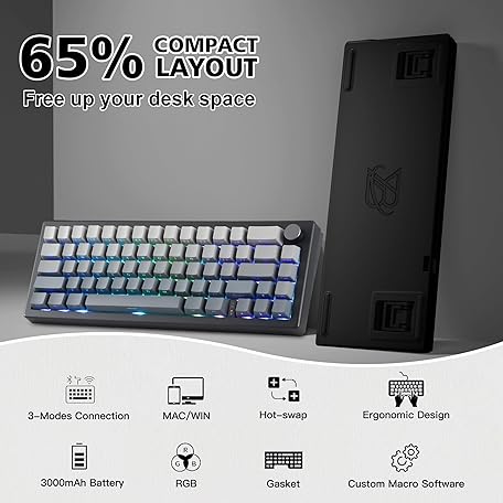 Thông tin sản phẩm BOYI GMK67-65% Mechanical Keyboard,Gasket-Mounted HotSwap BT5.0/Type-C/2.4G Wireless South-facing RGB,Cherry Profile PBT Keycaps Linear Lubed Switches Custom Gaming Keyboard (Side Black)
