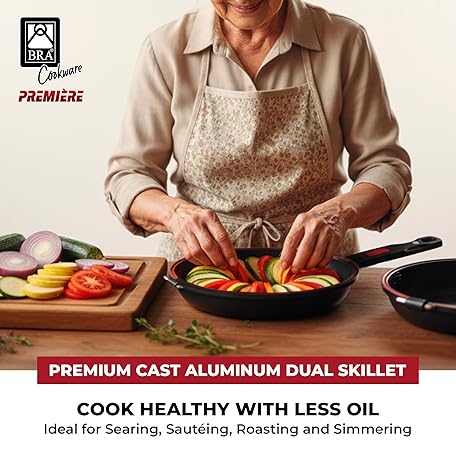Thông tin sản phẩm BRA Dupla Premiere Cast Aluminium Double Pan for Omelettes, Non-Stick, Suitable for All Cookers Including Induction 24 cm [Amazon Exclusive]