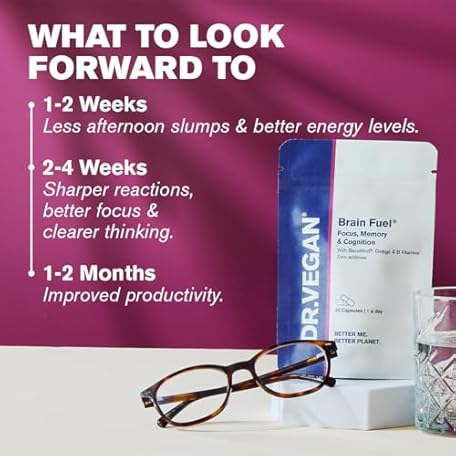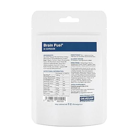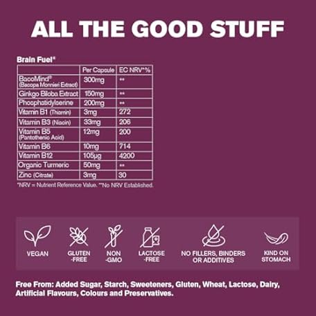Thông tin sản phẩm Brain Fuel | Focus, Memory and Cognition | Includes Bacopa Monnieri 300mg, Ginkgo Biloba 150mg | 30 Vegan Capsules | One-A-Day | DR.Vegan