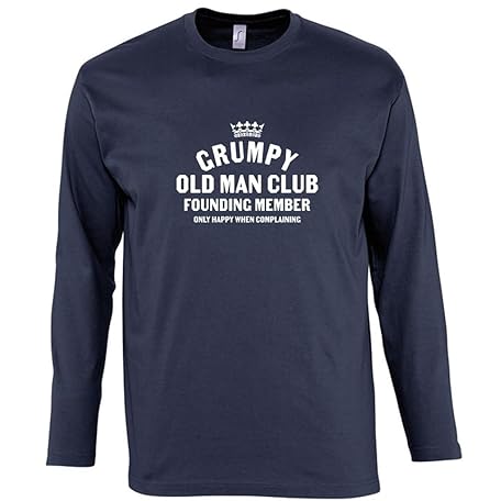 Brand88 Grumpy Old Man Club, Funny Gifts for Him, Gift for Dad Adults Long Sleeve Printed T-Shirt, Comfy Cotton Unisex Tee, Navy, X-Large