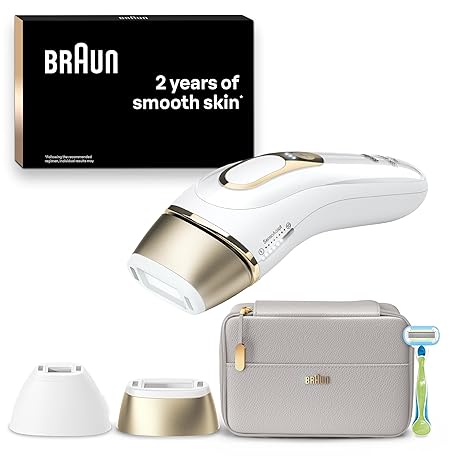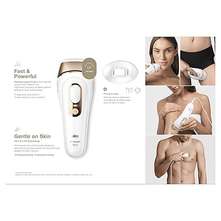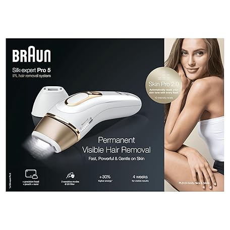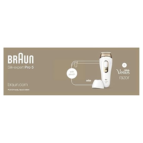 Thông tin sản phẩm Braun IPL Silk Expert Pro 5, Visible Permanent Hair Removal For Women & Men With Venus Razor and Precision Head, Premium Pouch, Alternative For Laser Hair Removal, PL5124, White/Gold