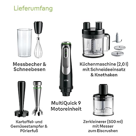 Thông tin sản phẩm Braun MultiQuick 9 MQ Hand Blender - with Active PowerDrive and SplashControl, incl. Masher, Vegetable Masher, Blender, Chopper & Whisk, 1200 Watt, Black/Stainless Steel