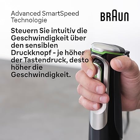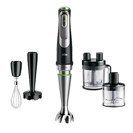 Thương hiệu Braun là cái tên nổi tiếng được rất nhiều khách hàng trên thế giới chọn lựa. Với kiểu dáng đẹp mắt, sang trọng, sản phẩm Braun MultiQuick 9 MQ Hand Blender - with Active PowerDrive and SplashControl, incl. Masher, Vegetable Masher, Blender, Chopper & Whisk, 1200 Watt, Black/Stainless Steel là sự lựa chọn hoàn hảo nếu bạn đang tìm mua một món cho riêng mình.