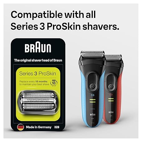 Thông tin sản phẩm Braun Series 3 Electric Shaver Replacement Head, Easily Attach Your New Shaver Head, Compatible With All Series 3 ProSkin Electric Shavers, 32B, Black