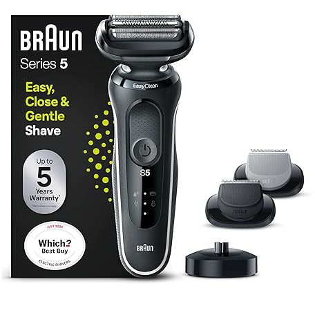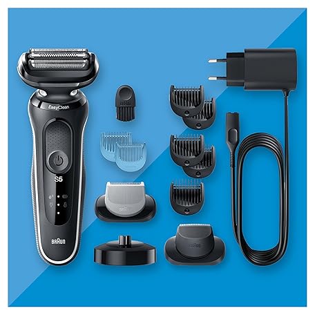 Thông tin sản phẩm Braun Series 5 Electric Shaver With Beard Trimmer, Body Groomer & Charging Stand, Wet & Dry, 100% Waterproof, UK 2 Pin Plug, 50-W4650cs, White Razor
