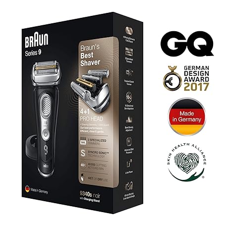 Thương hiệu Braun là cái tên nổi tiếng được rất nhiều khách hàng trên thế giới chọn lựa. Với kiểu dáng đẹp mắt, sang trọng, sản phẩm Braun Series 9 Electric Shaver With Precision Trimmer, Charging Stand and Travel Case, Wet and Dry, 100 Percent Waterproof, UK 2 Pin Plug, 9340s, Black Razor là sự lựa chọn hoàn hảo nếu bạn đang tìm mua một món cho riêng mình.