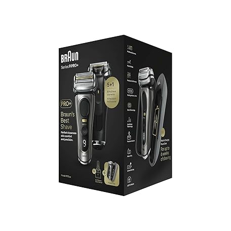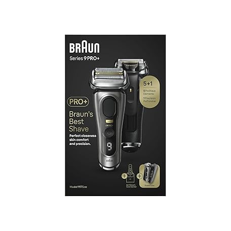 Thông tin sản phẩm Braun Series 9 Pro+ Electric Shaver with 5 Pro Shaving Elements, Men's Electric Shaver, Long Hair Trimmer, Cleaning Station, Charging Case, PowerCase, Made in Germany, 9575cc, Grey
