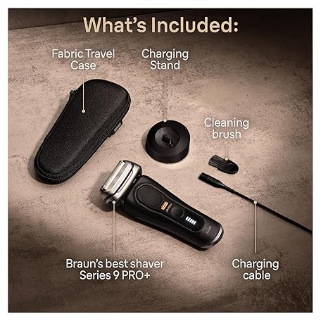 Thông tin sản phẩm Braun Series 9 PRO Plus Electric Shaver for Men, 5 Pro Shave Elements and Precision Long Hair ProTrimmer, Charging Stand, Wet and Dry Electric Razor with 60min Runtime, 9510s, Black