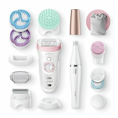 Thông tin sản phẩm Braun Silk-épil 9-in-1 Hair Removal & Beauty Set, Waterproof, White/Pink, Includes Facial Epilator, Lady Shaver, Trimmer, Exfoliator, Cleansing Brush