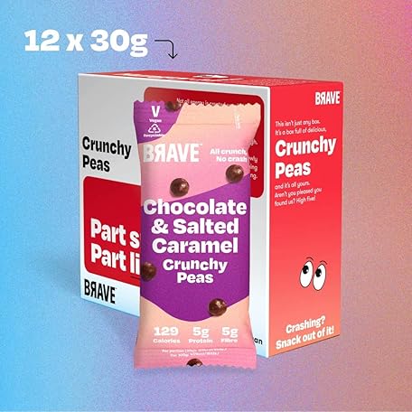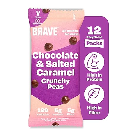 Sản phẩm BRAVE Roasted Peas: Chocolate & Salted Caramel - Healthy Snack, Low Calorie (12 x 30g Packs) đang được bán với giá ưu đãi là $21.7237 tại nước Anh.
