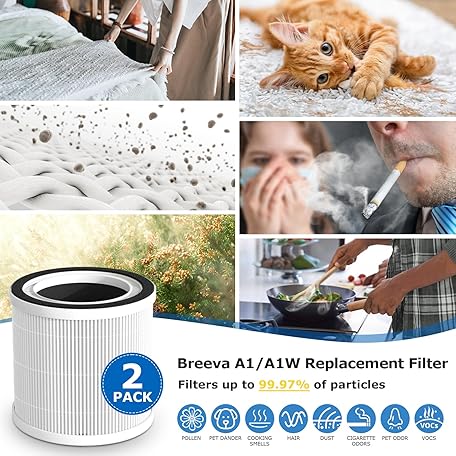 Thông tin sản phẩm BREEVA A1 Filter Compatible with TCL BREEVA A1/A1W Air Purifi-er, Part # Breeva A1F, 3-IN-1 Efficient BREEVA A1 Filter【Not Fit for TCL Breeva A1C/A2/A3/A5】