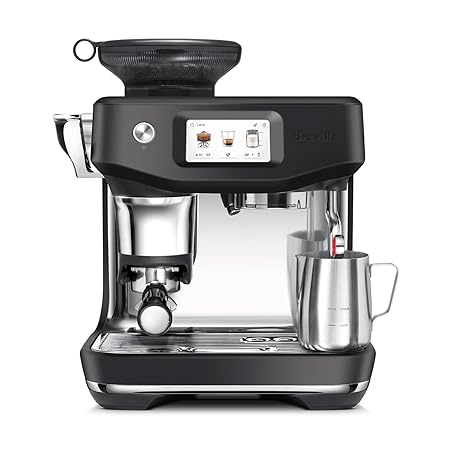 • Breville the Barista Touch Impress Espresso Machine with Grinder & Auto Milk Frother, Espresso Maker with Assisted Tamping & Touchscreen, Cappuccino & Latte Machine for Home, BES881BTR, Black Truffle
