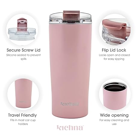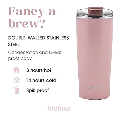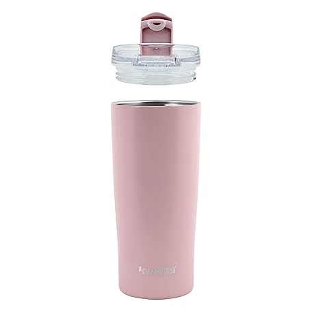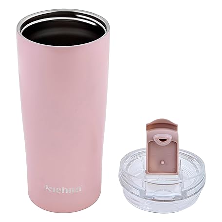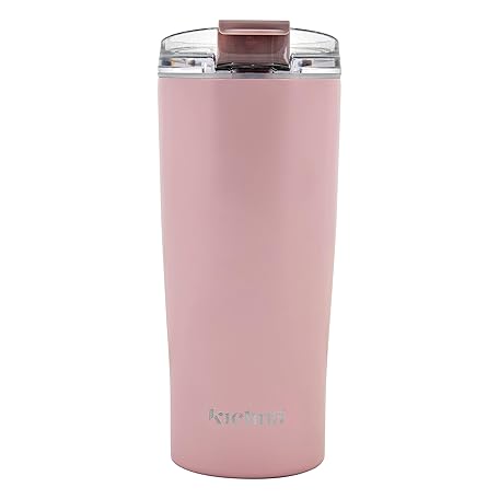 Brewer Travel Coffee Tumbler with Flip Lid Lock | Double Walled Stainless Steel Vacuum Travel Mug | BPA Free Lid Leak & Spill Proof | Keep Cold for 14Hrs or Hot for 3Hrs 550ml - Blush Pink