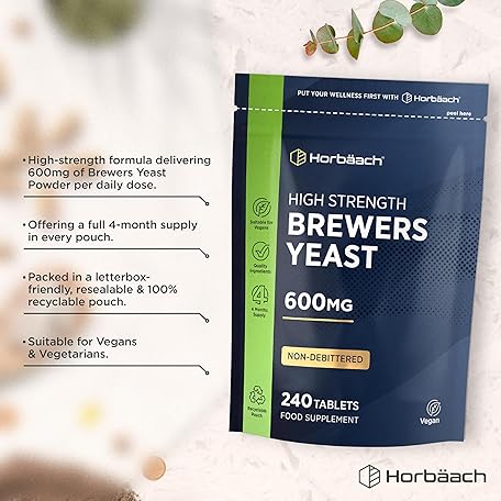 Sản phẩm Brewers Yeast Tablets 600mg | 240 Count | Natural Source of B-Vitamins, Amino Acids, Minerals & Trace Elements | High Strength Supplement | by Horbaach đang được bán với giá ưu đãi là $12.8184 tại nước Anh.