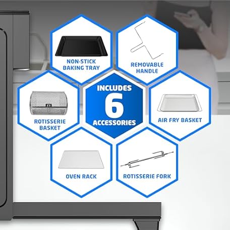 Thông tin sản phẩm Bridge Pro 30 Litre Air Fryer Oven 1800W with Rotisserie Accessory Set - Extra Large Air Fryer for Family, 20 in 1 Dual Cook, Smart Dial, 360° Hot Air Circulation, Time & Temp Control, Fast Cooking