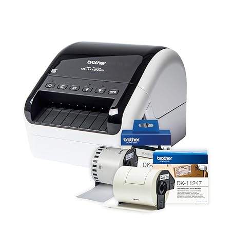 Brother QL-1110NWBc Label Printer | Shipping Labeller | Wireless/USB 2.0 | Desktop | Wide Format 4 Inch Labels | UK Plug
