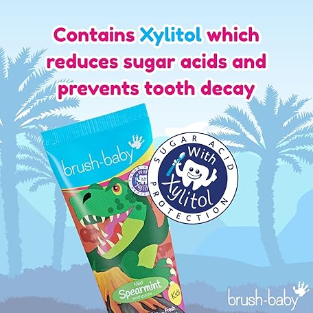 Thông tin sản phẩm Brush-Baby - Mild Spearmint Kids Toothpaste, 3 x 50ml Tubes - for Ages 3+ - with Xylitol & Fluoride - Strong Teeth, Healthy Gums & Fresh Breath - Gentle Vegan Formula, Safe if Swallowed