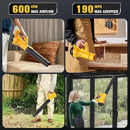 Thông tin sản phẩm Brushless Leaf Blower Compatible with Dewalt Battery 20V MAX, 6-Speed Adjustable, 600CFM/190MPH(Max), Lightweight(2.6LBS) Leaf Blower for Yard, Patio, Garden, Grass(Tool only)
