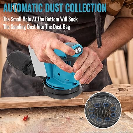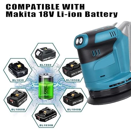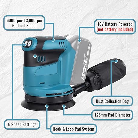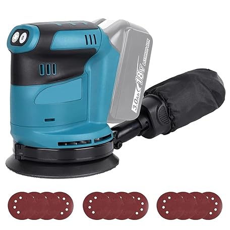 Thông tin sản phẩm Brushless Orbital Sander Compatible with Makita 18V Battery, Cordless Random Orbital Sander with 12Pcs Sandpapers, 360°Rotating Sanding, for Sanding, Polishing Metal/Wood (Tool only,no Battery)
