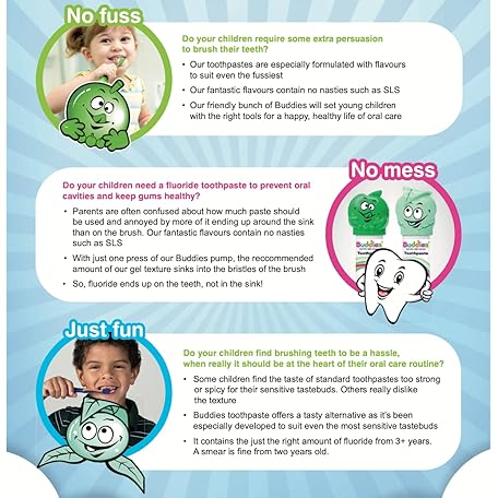 Thông tin sản phẩm Buddies Toothpaste Hint of Mint Pump Dispenser Twin Pack 100ml x 2 Mild Butter Mint Taste, SLS Free, for Those That Dislike Most Minty Toothpastes