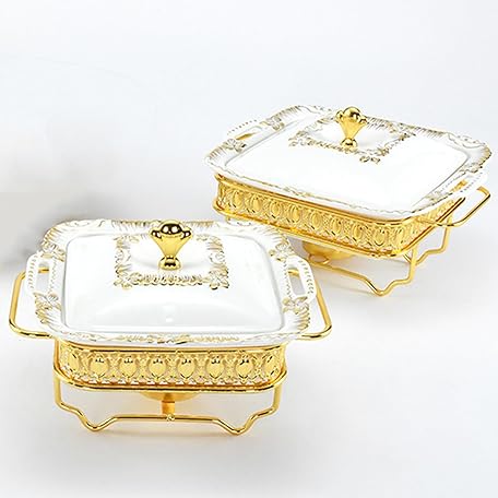 Buffet Coffee Table Fondue Set - Catering Ceramic Buffet Warmer, Buffet Heating Container and Crock Pot, Restaurant Food Alcohol Heating Equipment for Catering Buffet Warming Tra(Size:1.2L,Color:Gold)