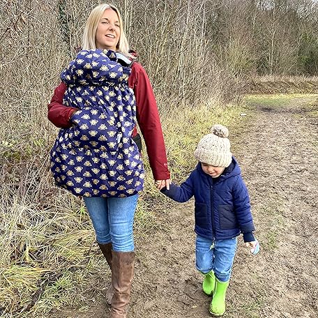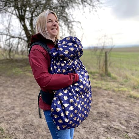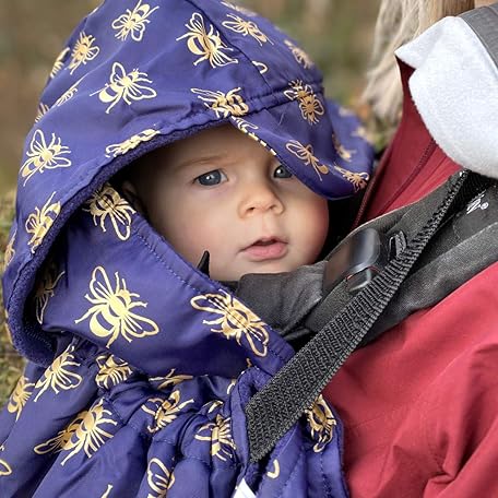 Thông tin sản phẩm BundleBean - Babywearing All-Weather Waterproof Sling and Baby Carrier Cover (Gold Bees) - Rain Cover with Fleece Lining, Universal Fit, Fits Front & Back Carriers, Protection from Rain & Wind