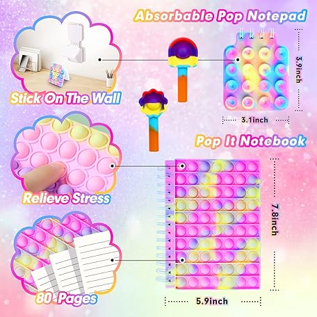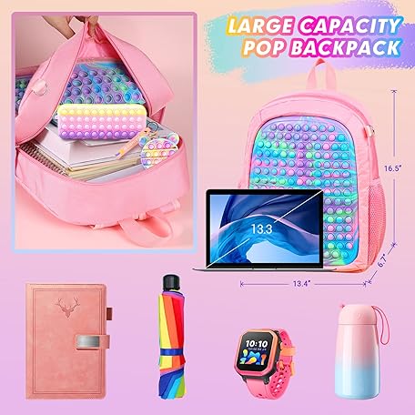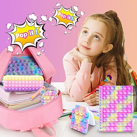 Thông tin sản phẩm BuQueHM Large Pop Fidget Backpack for Girls, Pop it Bags&pop it Notebook and Pencil Case for Kids' Fidget School Supplies for Elementary Student Stress Relief, Great Birthday Present Gift for Kids