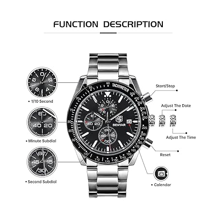 Thương hiệu BY BENYAR là cái tên nổi tiếng được rất nhiều khách hàng trên thế giới chọn lựa. Với kiểu dáng đẹp mắt, sang trọng, sản phẩm BY BENYAR Watch for Men Analog Quartz Chronograph Waterproof Luminous Designer Big Face Mens Wrist Watches Business Work Sport Casual Dress Watch Elegant Gifts for Men là sự lựa chọn hoàn hảo nếu bạn đang tìm mua một món cho riêng mình.