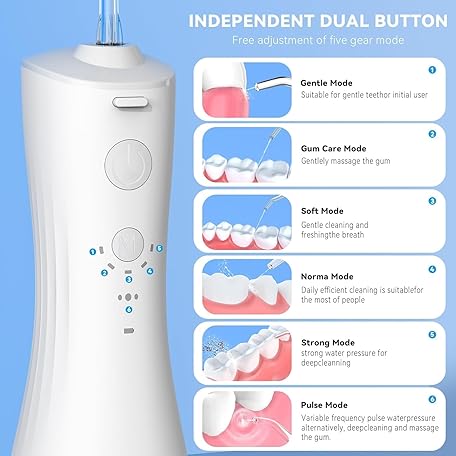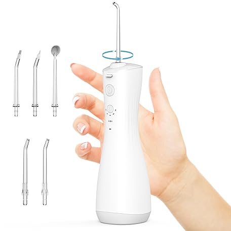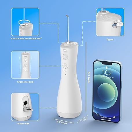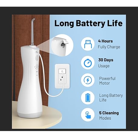 Thông tin sản phẩm BY4U Water Flosser Cordless Portable Oral Irrigator 5 Jet Tips, IPX7 Waterproof, 250ML Detachable Water Tank for Home and Travel