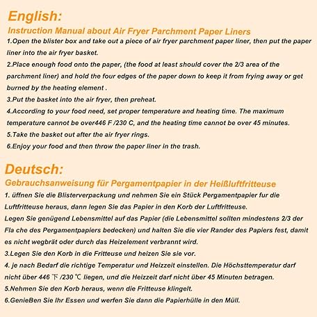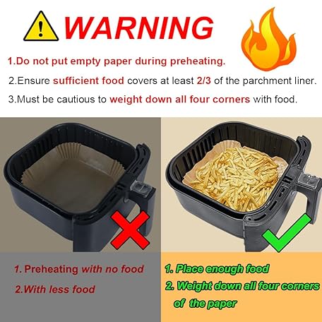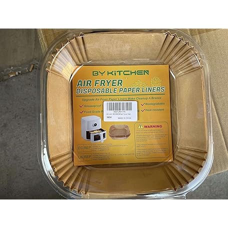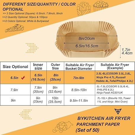 Thông tin sản phẩm BYKITCHEN Air Fryer Parchment Paper Liner, 50PCS Square Air Fryer Liners Disposable, Greaseproof Paper, Compatible with COSORI, Ninja, Tefal, Russell Hobbs Fryers (Unbleached)