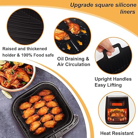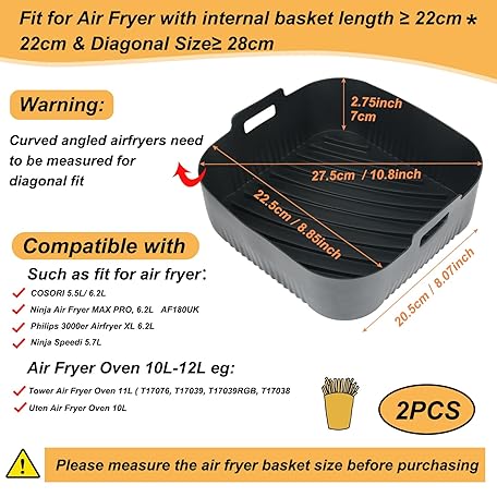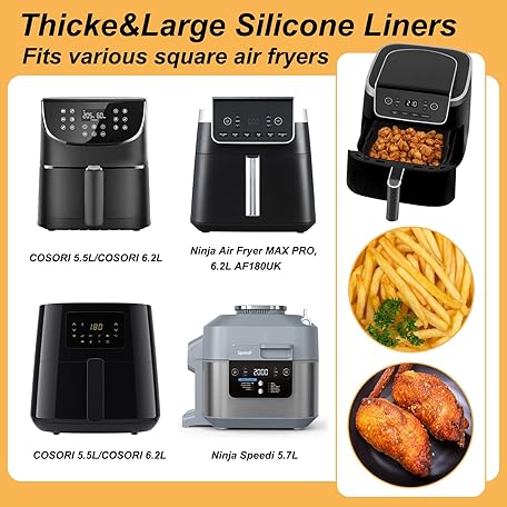 Thông tin sản phẩm BYKITCHEN Air Fryer Silicone Liner, 2 PCS 9 Inch Extra Large Air Fryer Liners for Tower Oven, Air Fryer Accessories for Cosori 5.5L,Ninja Speedi 5.7L, Tefal 6.5L, Instant 5.7L Air Fryer(Inner 20.5CM)