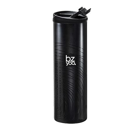 BZYOO Brew 15oz Stainless Vacuum Insulated Skinny Tumbler Coffee Drinking Mug Water Thermal Bottle with Leak Proof Lid for Everyday Use or Holiday Gifts (Organica Black, BPA Free)