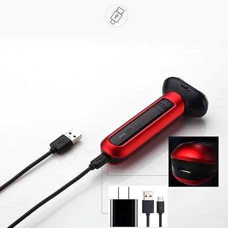 Thông tin sản phẩm C-JT Comfortable grip, Electric Shaver Men's Razor Rotary Razor For Rechargeable IPX7 Waterproof Men's Wet And Dry Waterproof(red) For Whiskers,Hair And Body,Hair removal