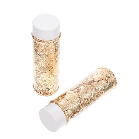 Cabilock 2 Bottles Edible Gold Leaf Flakes Cake Decorating Cupcake Glitter Sprinkles DIY Baking Suitable for Chocolate Pastry Dessert Decoration Comes Storage Bottle