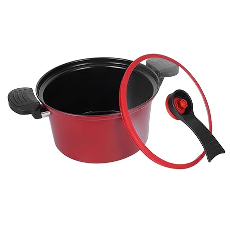 Cabilock Micro Pressure Cooker Stockpot with Lid Non-stick Multi-functional Soup Pot for Induction and Gas Stoves Red Household Braising Stewing Boiling Cooking Pan
