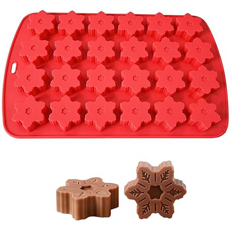 • CAKEEYUM Christmas Silicone Molds 24-Cavity Cute Snowflake Silicone Mold Flexible Non-Stick Ornaments for DIY Candy Chocolate Jello Cupcakes Ice Cube Christmas Chocolate Molds, Snowflake