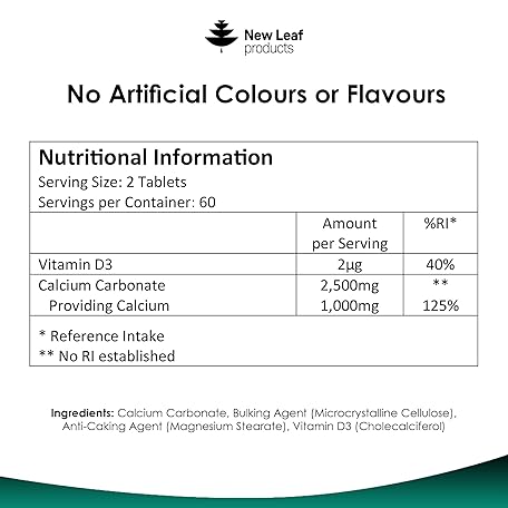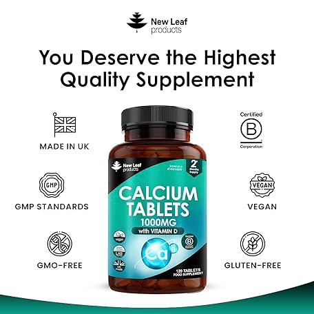 Sản phẩm Calcium and Vitamin D3 Tablets - Calcium Supplement - 120 High Strength Tablets with Vitamin D3 - Made in The UK by New Leaf Bone & Muscle Health đang được bán với giá ưu đãi là $15.696 tại nước Anh.