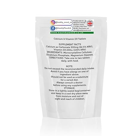 Thương hiệu Healthy Mood là cái tên nổi tiếng được rất nhiều khách hàng trên thế giới chọn lựa. Với kiểu dáng đẹp mắt, sang trọng, sản phẩm Calcium Carbonate 500mg and Vitamin D3 500mg200iu 120 Tablets - LetterBox Friendly UK Fast Delivery - là sự lựa chọn hoàn hảo nếu bạn đang tìm mua một món cho riêng mình.