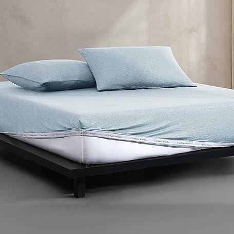 Calvin Klein - King Bed Sheets, Cotton Melange Jersey Bedding Set with Deep Pockets, Super Soft & Cozy Bedding Essentials (Modern Cotton Aqua, King)