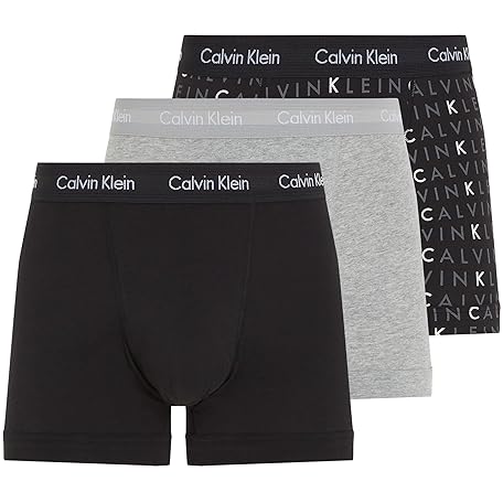 • Calvin Klein Men’s 3 Pack Trunks Underwear, Multicolor (Black/Grey Heather/Subdued Logo), M