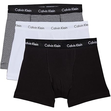 • Calvin Klein Men’s 3 Pack Trunks Underwear, Multicolor (White/B&W Stripe/Black), XL